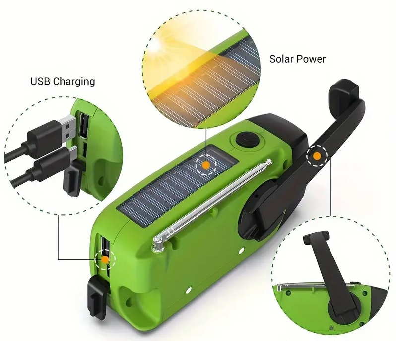 Radio De Manivela De Emergencia Con Cargador De Teléfono De 2000 MAh, Radio Meteorológica Portátil AM/FM/NOAA Con 3 Linternas LED, Radio Recargable USB Con Energía Solar Para Camping En Interiores Y Exteriores