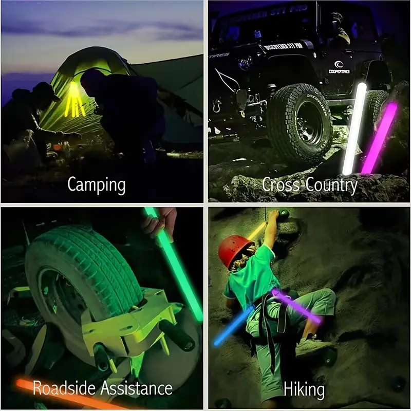 Varillas de Luz de Emergencia – Plástico de Alto Índice, Acabado de Metal Pulido, No Cargadas, No Inflamables. Varillas de Seguridad de Iluminación de 48 Horas para Acampar y Emergencias.