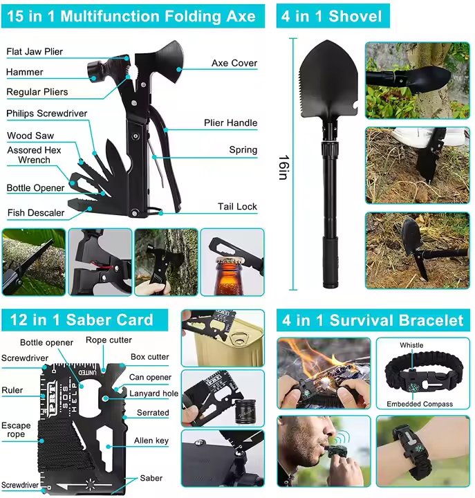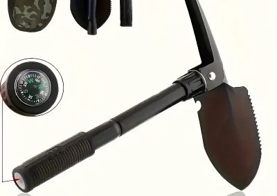 Pala de Supervivencia Plegable Versátil con Sierra, Pico y Abridor de Botellas – Hierro Duradero, Portátil, con brújula