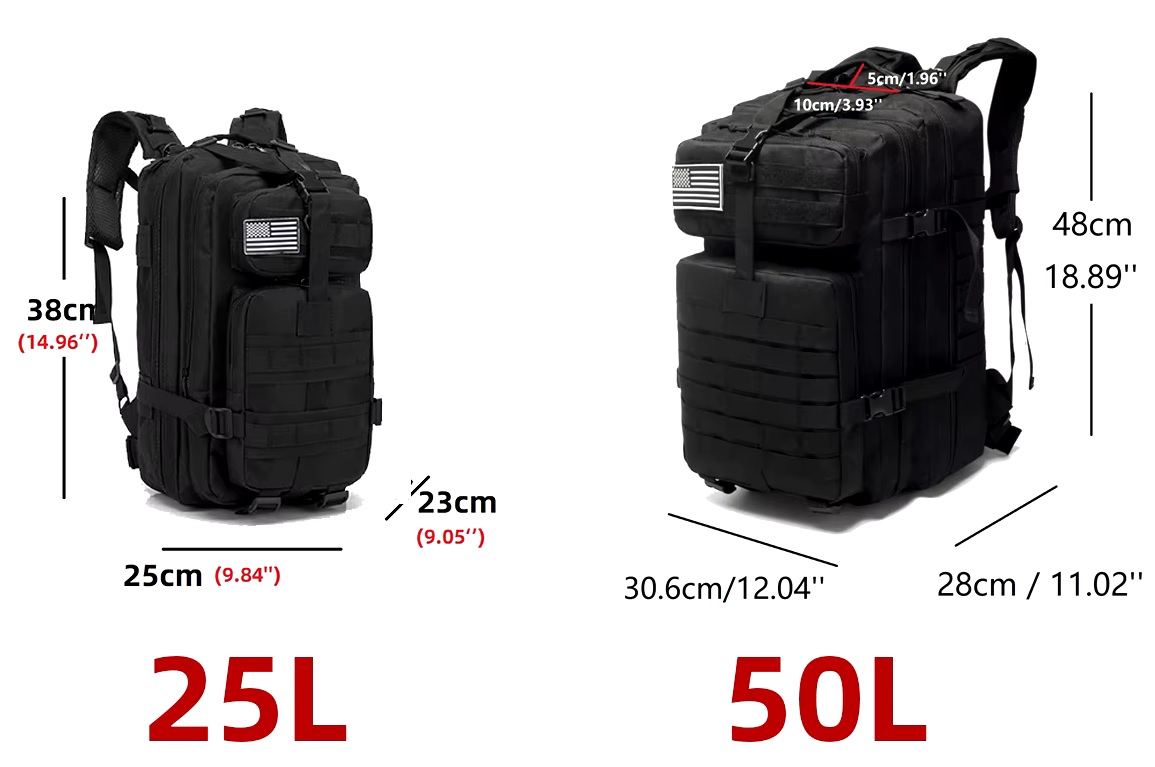 MOCHILAS DE 25 Y DE 50 LITROS PARA SUPERVIVENCIA